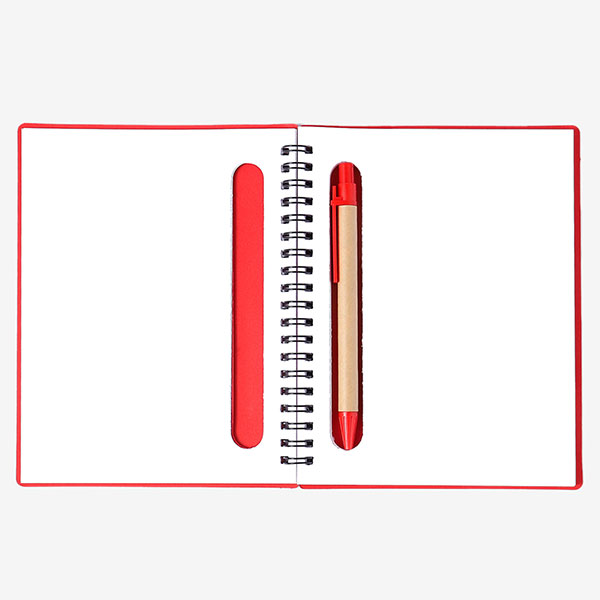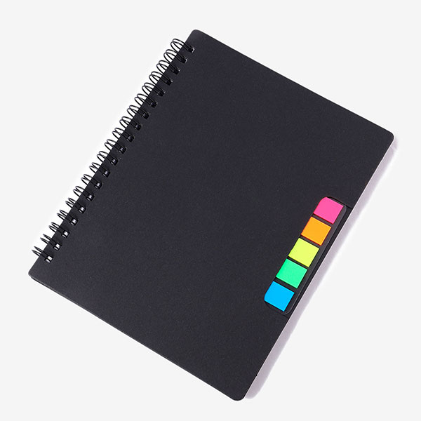incluye boligrafo ecológico retractil, y 5 post it de colores.