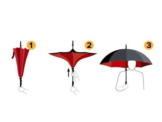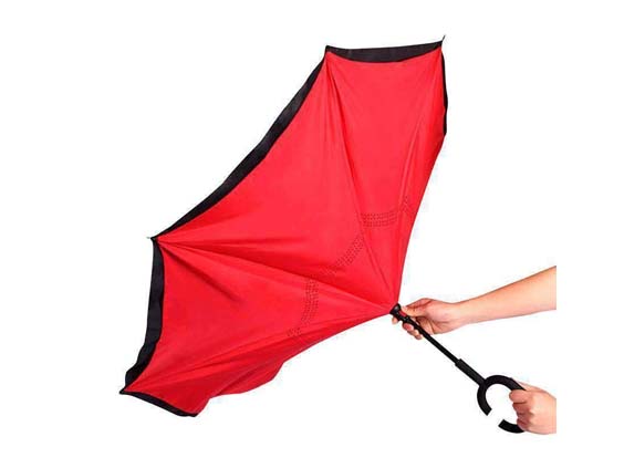 Paraguas invertidos (abre al reves)Colores: celeste-azulrojo-negroplata-negroMedidas: 80 cm x 1 metro