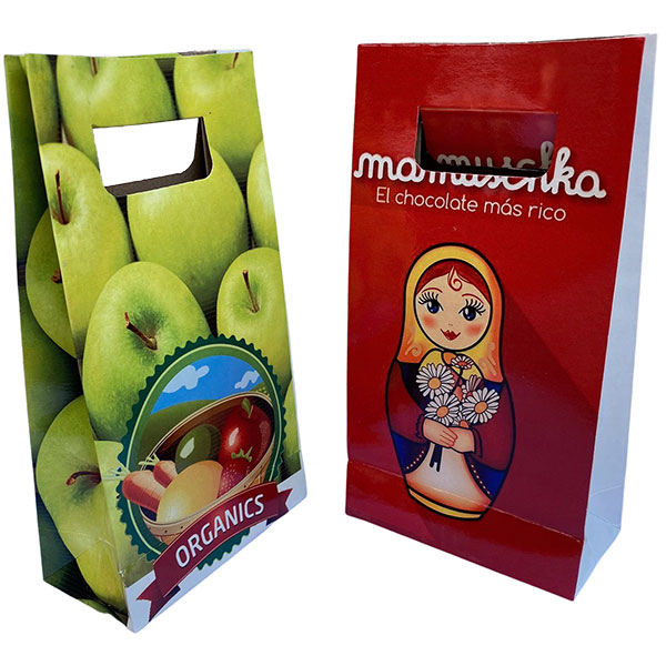 Nueva Bolsa de Cartulina Color Blanco en su exterior, y color madera en su interior-
