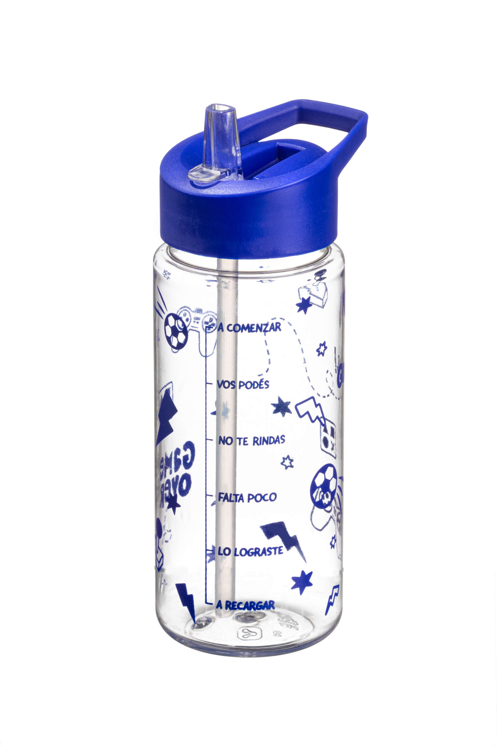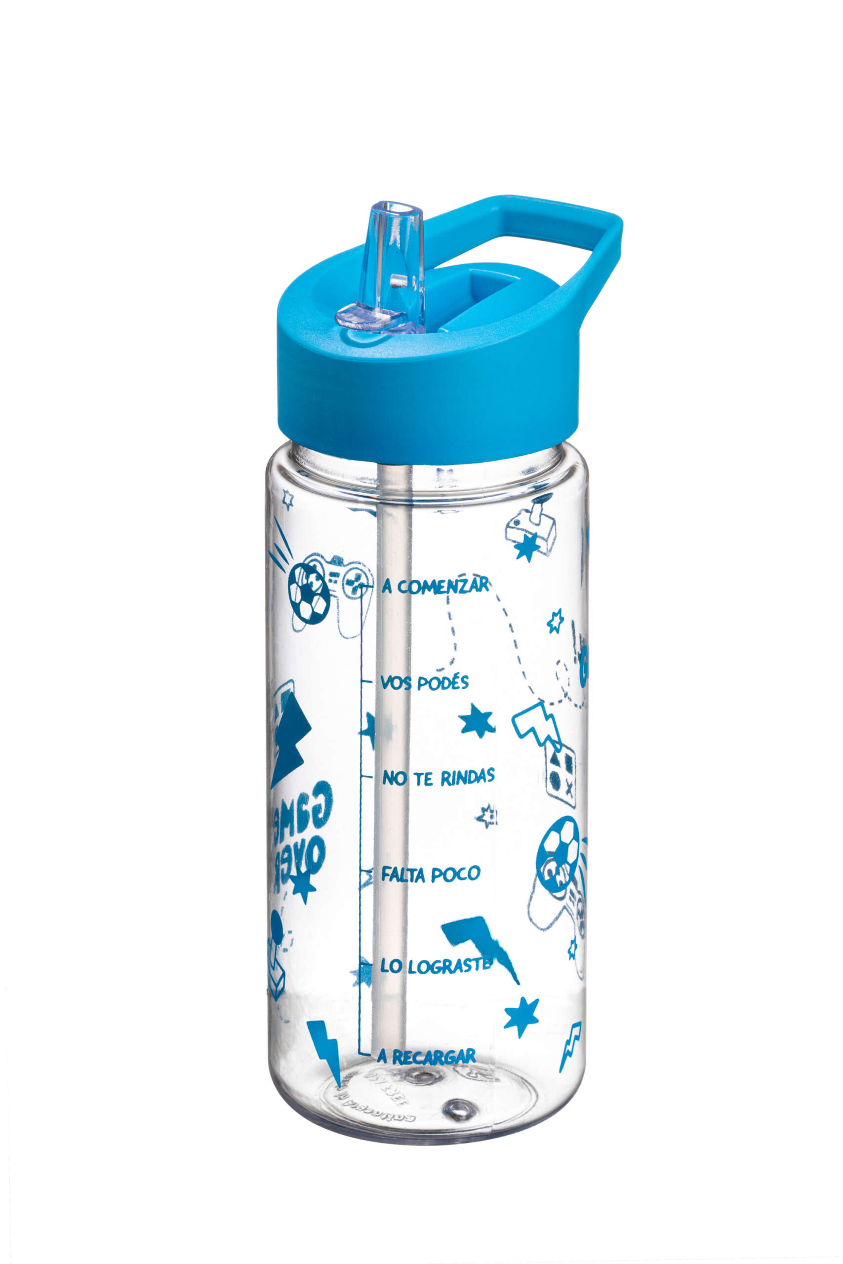 Botella recta. Capacidad  500cc. Material libre de BPA. Tapa rebatible con sorbete. Pared super rígida no flexible de material PET. Alta calidad en sus terminaciones y materiales. Medida: 17,5cm de altura. Incluye impresión rotativa en color al tono de la tapa.