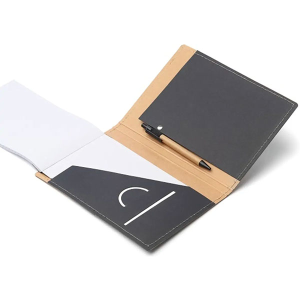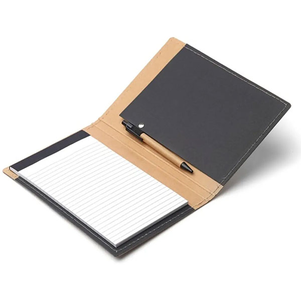 Block de 55 hojas rayadas, Bolígrafo, tarjetero en contratapa.