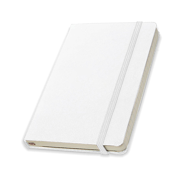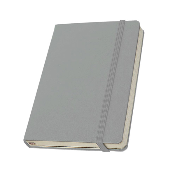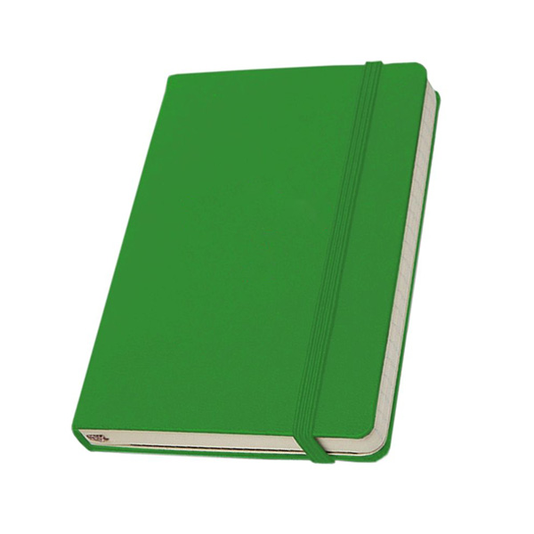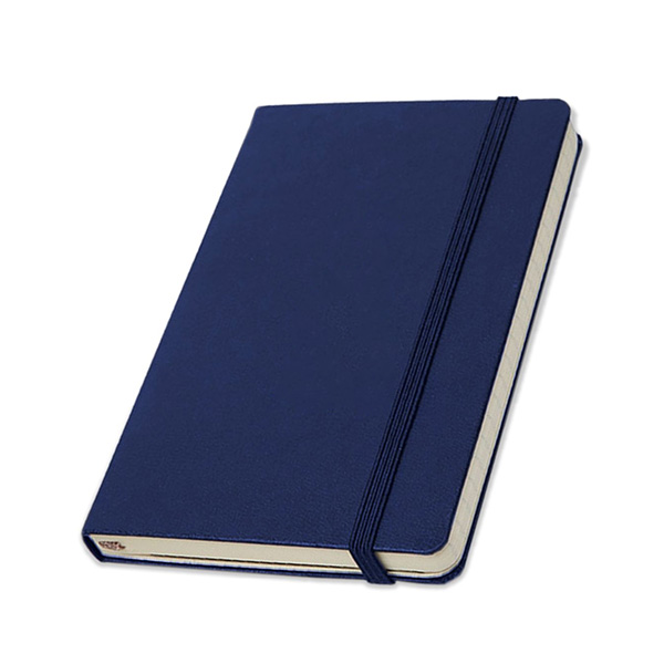 Libreta de tapa dura en diferentes colores. Contiene 96 hojas rayadas de 70 gramos. Posee cierre con banda elástica, porta bolígrafo y separador en tela del mismo color que la tapa.