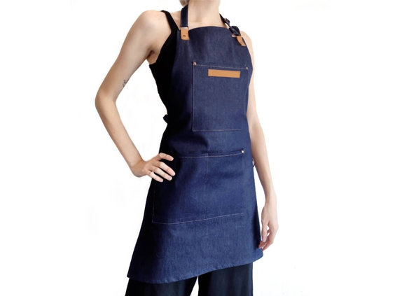 Delantal Jean Y Cuero Vacuno Con Porta Repasador O Toalla Cod300