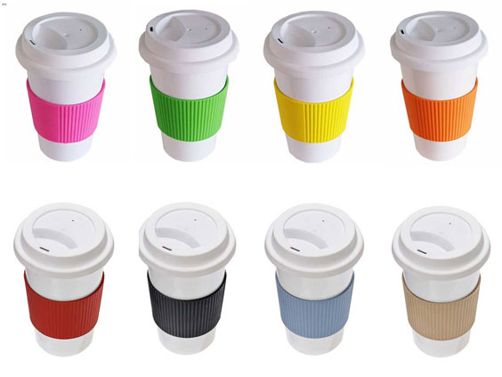 Jarros térmicos, doble capa, capacidad 330c, cuerpo plástico rigido terminacion brillante, tapa y agarradera de goma siliconada.