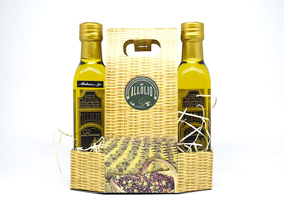 Kit 2 Aceite + Aceitunas Premium 1) Aceite de Oliva de Albahaca y Ajo 250 cm3. Extra Virgen. Marca: Allolio. 2) Aceite de Oliva. 250 cm3. Extra Virgen. Marca: Allolio. 3= Aceitunas Verdes de mesa en salmuera 450gr.