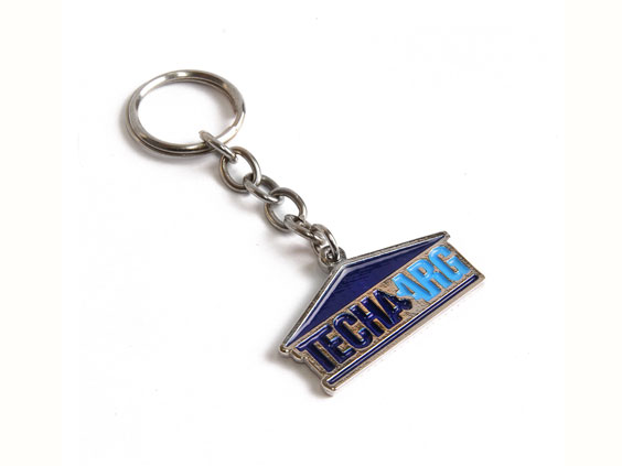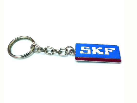 Llavero metálico, plateado, matrizado, con logos en relieve y pintura 1 color (consultar por colores extra).