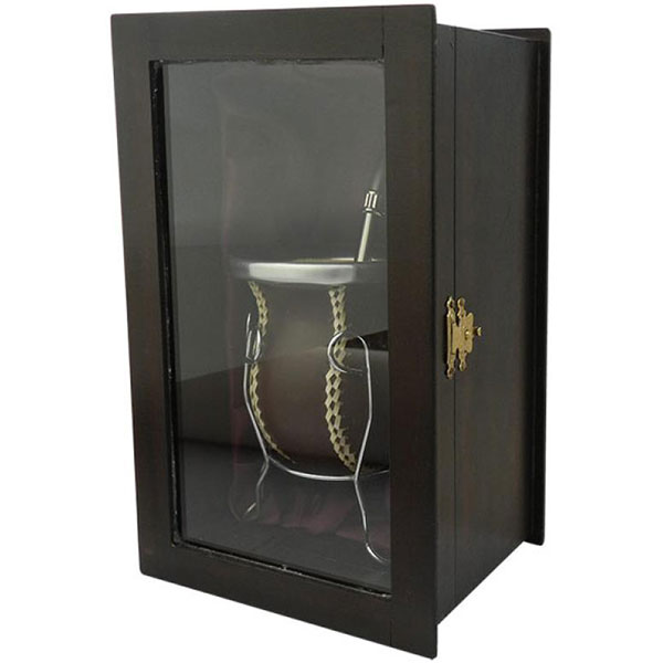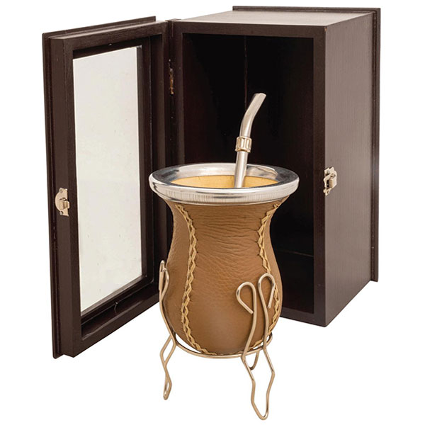 Mate de vuelo de calabaza recubierto en cuero, bombilla acero inox con caja fina.
