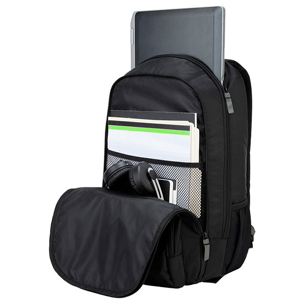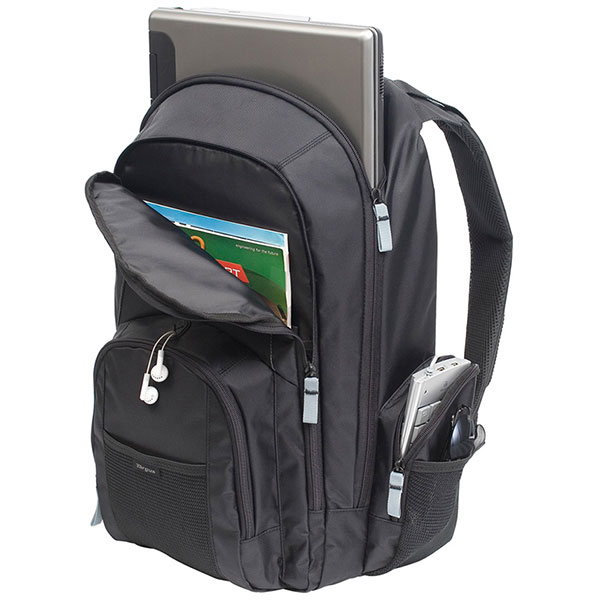 La mochila Targus Groove de 17" contiene un compartimento acolchado diseñado para proteger computadoras portátiles con pantallas de hasta 17". La mochila también está equipada con un bolsillo frontal que incluye presillas para bolígrafos y un bolsillo multimedia con puerto de salida para auriculares para escuchar música fácilmente mientras estás en movimiento. Además del compartimento para la laptop, la mochila Groove también cuenta con una amplia sección para llevar libros o carpetas. También tiene varios compartimentos para accesorios, portabotellas dobles y un práctico bolsillo con cierre lateral para almacenamiento adicional. Ya sea para viajes, asistir a la escuela o transportar tu computadora portátil al trabajo, esta mochila casual es funcional para el viajero cotidiano.