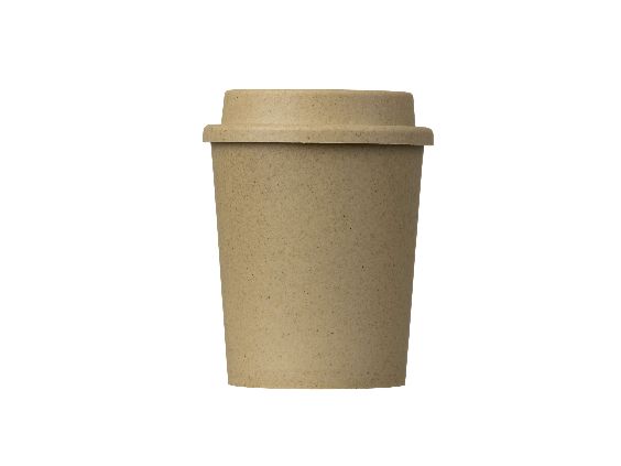 Jarro térmico de doble pared. Capacidad 250cc. Material polipropileno + 50% FIBRA DE MADERA.  Pared  rigida de terminación satinada. Producto REUTILIZABLE.
