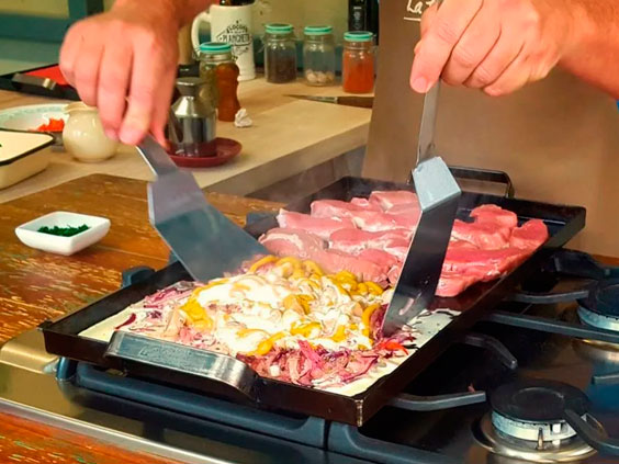 Plancheta de 2 hornallas + Espátula de Acero Inoxidable + Tapa marca La Planchetta