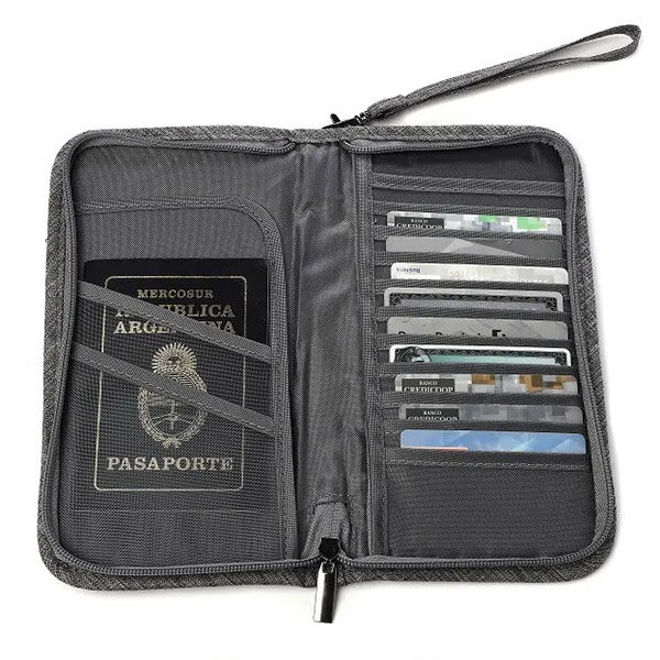 Interior: Bolsillo con y sin cierre, porta tarjetas múltiples.