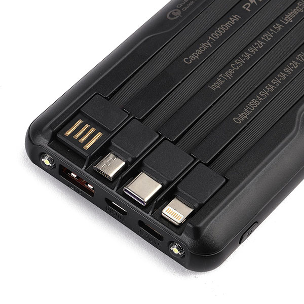 No te quedes sin energía para tu dispositivo móvil o tablet, con su capacidad de 10.000 mAh se puede cargar varias veces y al mismo tiempo. Cuando tu power bank necesita recargarse, simplemente lo puedes conectar con su cable tipo C (incluido) o bien directamente con su ficha USB. En su frente posee un visor digital para saber que porcentaje de carga tiene disponible. Como si esto fuera poco, tiene 2 luces led, para iluminar en caso de ser necesario.