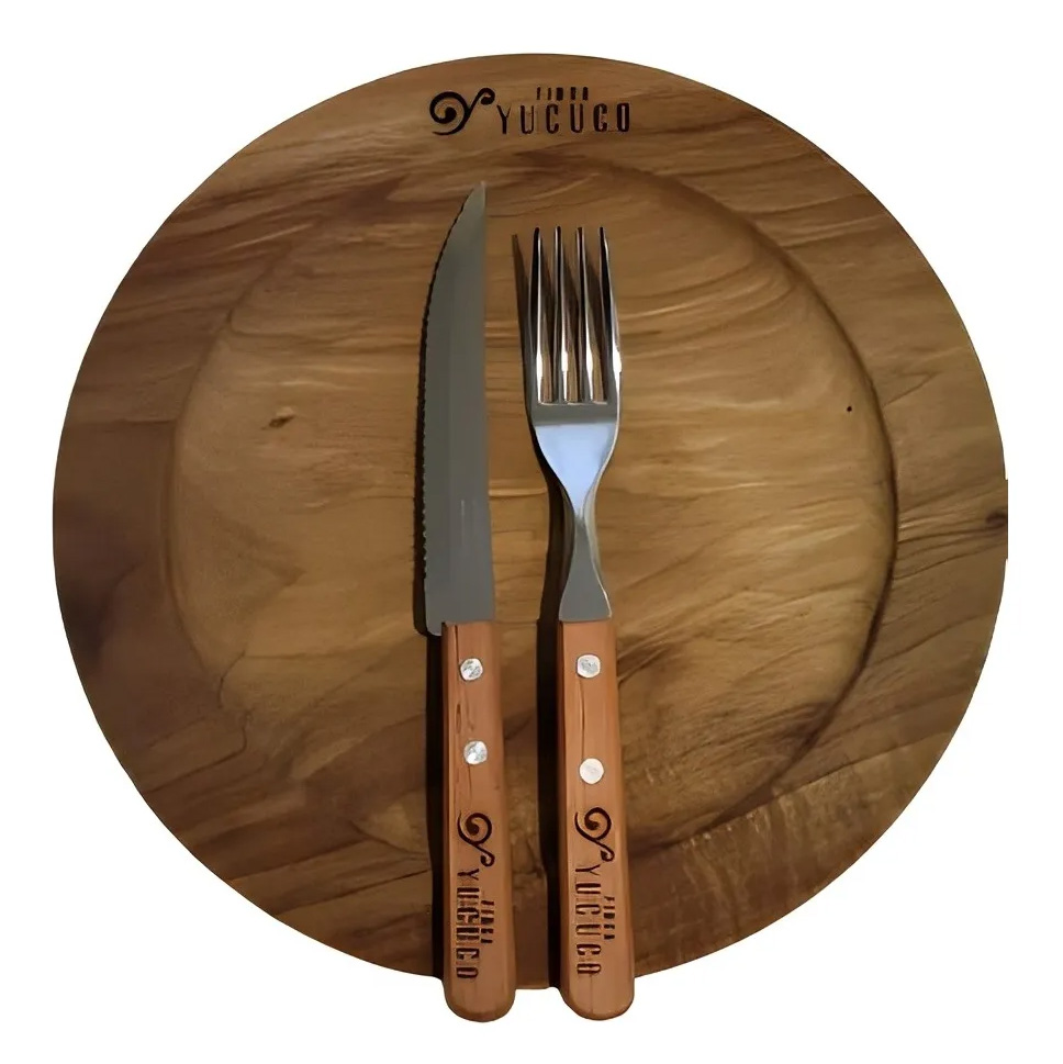 - 6 pares de cubiertos marca Tramontina mango de madera. Si lo desea, puede cambiarlos por los cubiertos grandes modelo Jumbo Tramontina (con costo adicional el cambio)