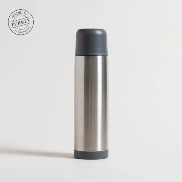 Termo De Acero Inoxidable Tapa Curva Gris Claro Y Gris Topo 750 Ml