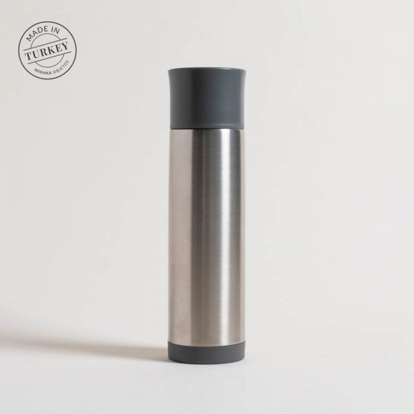 Termo De Acero Inoxidable Tapa Plana Gris Claro Y Gris Topo 750 Ml